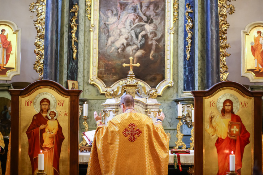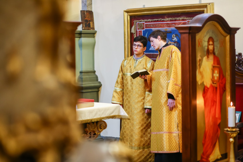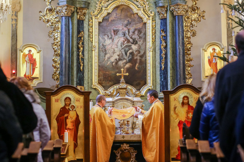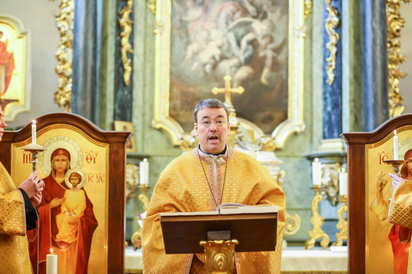 Az ünnepi liturgiára megtelik a templom. A nagy alkonyati istentisztelet Szent Bazil liturgiáját – a hagyománytól eltérően – nem Kocsis Fülöp hajdúdorogi érsek-metropolita végzi, hanem Seszták István, a Hajdúdorogi Főegyházmegye érseki hivatalának irodaigazgatója. Rendkívüli az időpont, mert a Szent Liturgiával egy időben zajlik Rómában XVI. Benedek pápa temetése, amelyen a Magyar Katolikus Püspöki Konferencia tagjaival Kocsis Fülöp is részt vesz.