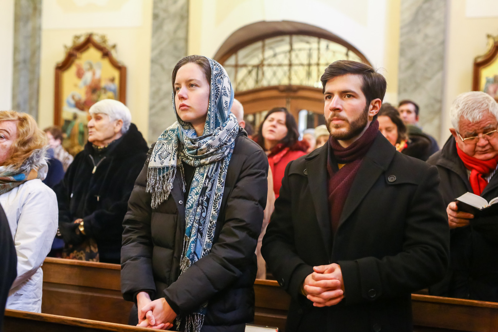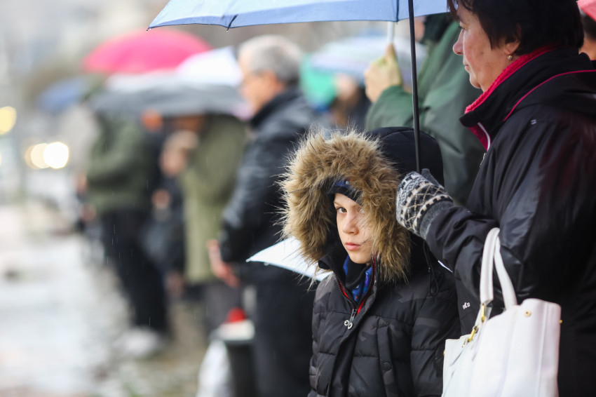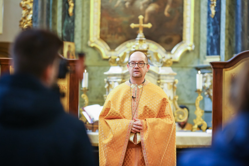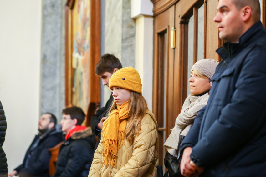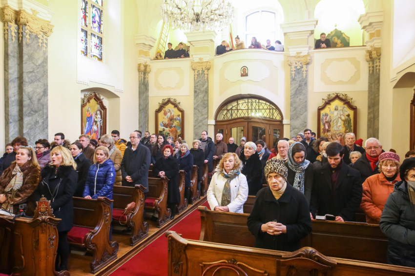 Csendesen esik, miközben gyülekeznek a hívek a Fő utcai görögkatolikus templomban vízkereszt ünnepén. A keresztények ősi szokása ezen a napon a vizek megáldása. Krisztus keresztségének emlékére a Katolikus Egyház vizet szentel a templomokban, a folyók és a patakok partján is.