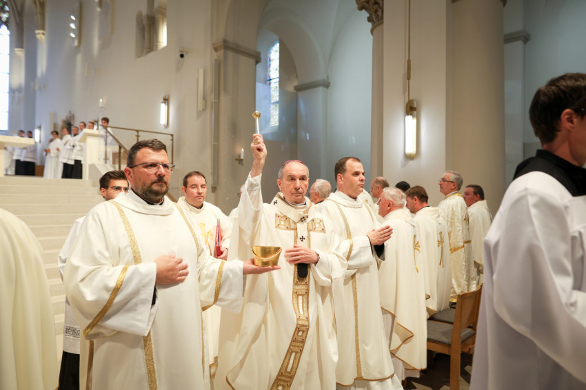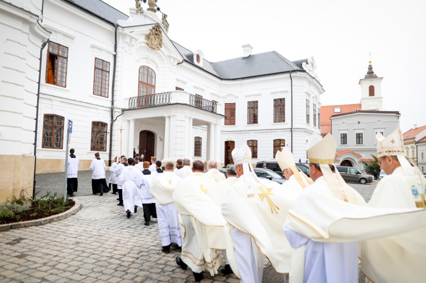 A főszékesegyházban felhangzott a 2022-ben díjnyertes Gizella-fanfár, majd a megújult harangok zúgására elindult az asszisztencia az érseki palotából.