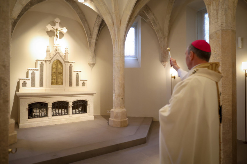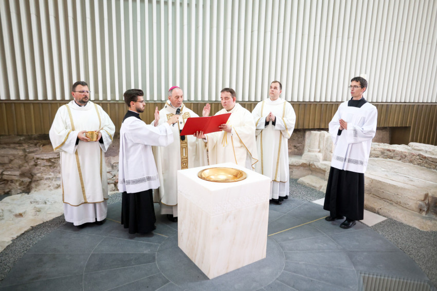 Az érsek ezután átvonult a Szent György-kápolna maradványait őrző keresztelőkápolnába, és megáldotta azt, majd az új keresztelőkutat is.