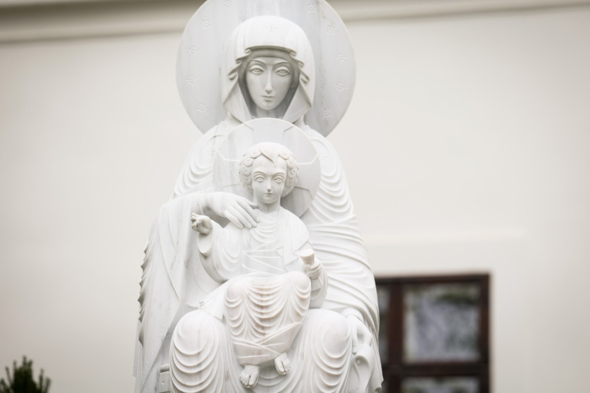 Az altemplomból az oldalhajóba visszatérve megáldotta a fából faragott Istenanya-szobrot és az egykori Nagyszeminárium kertjében elhelyezett Trónon ülő Istenanya-szobrot.