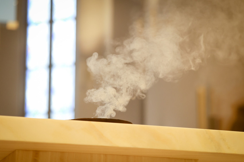 Udvardy György elmondta a felszentelő imádságot az oltár fölött, majd annak közepére és négy sarkára öntött a krizmából, és megkente vele a mensát. Ezután egy kis tűzhelyet állítottak az oltárra, és az érsek a parázsra tömjént tett, melynek füstje, mint az imádság, betöltötte a templomteret. Miután letörölték az oltárt, előkészítették a legszentebb áldozat bemutatására.