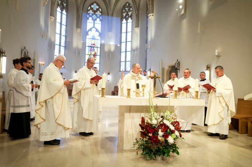 Az ünnepi szentmisén Székely János, a Magyar Katolikus Püspöki Konferencia elnöke, szombathelyi megyéspüspök; Spányi Antal székesfehérvári megyéspüspök, Felföldi László pécsi megyéspüspök, Schönberger Jenő szatmári megyéspüspök, a szerzetesrendek elöljárói, valamint a Veszprémi Főegyházmegye papsága koncelebrált.