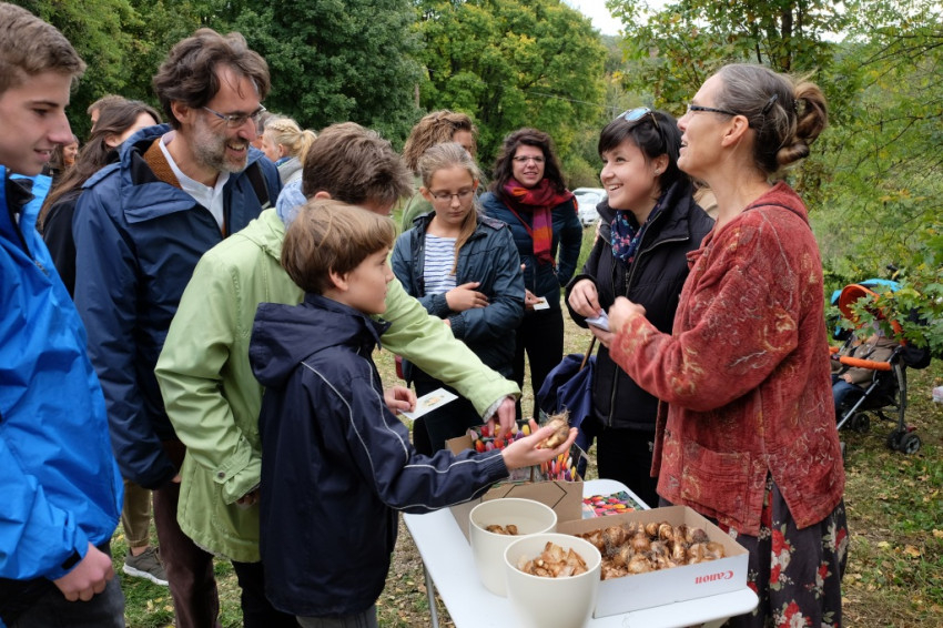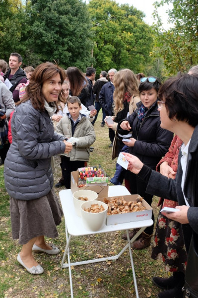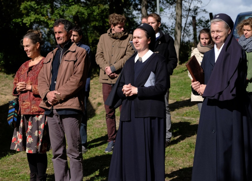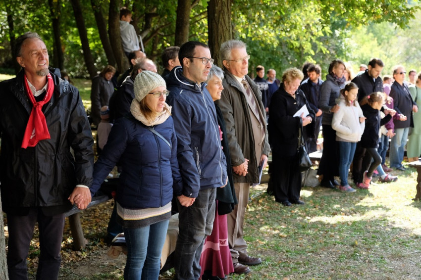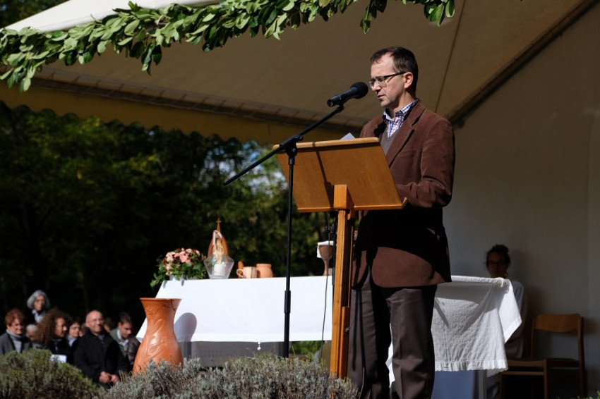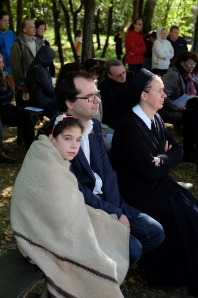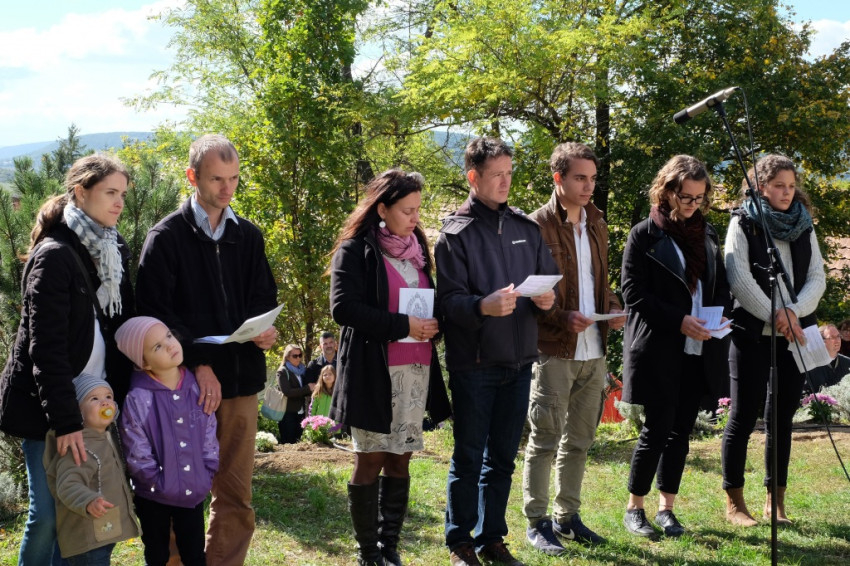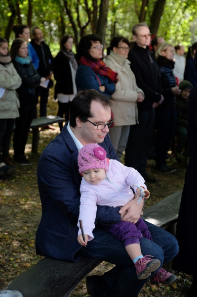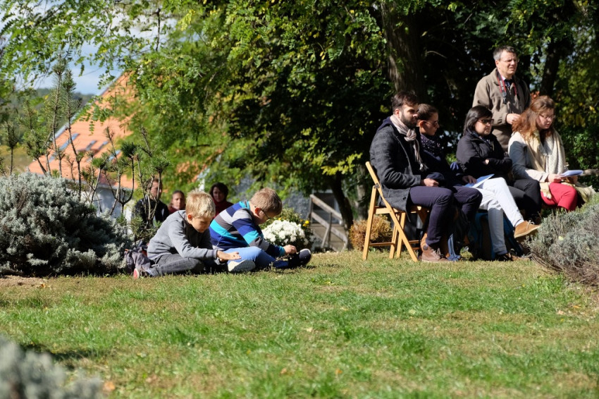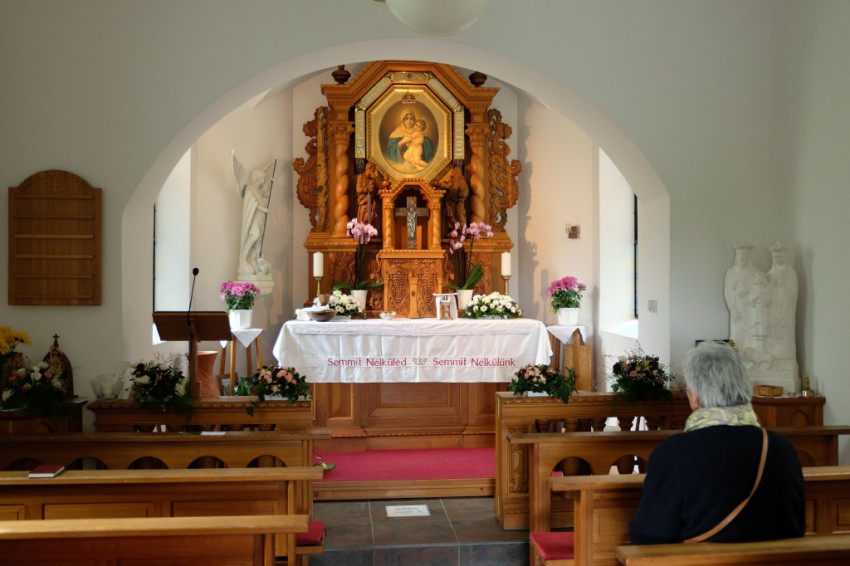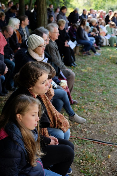 A misének vége, a közösség tagjai virághagymákat ültetnek az oltár előtt, majd mindenki ebédelni megy. Asztalunknál egy kislány áll meg, a sütistálunkat bűvöli. – Szeretnék egy diós csigát vinni a barátnőmnek – jelenti be. – Vidd csak – mondom neki –, jut is, marad is.