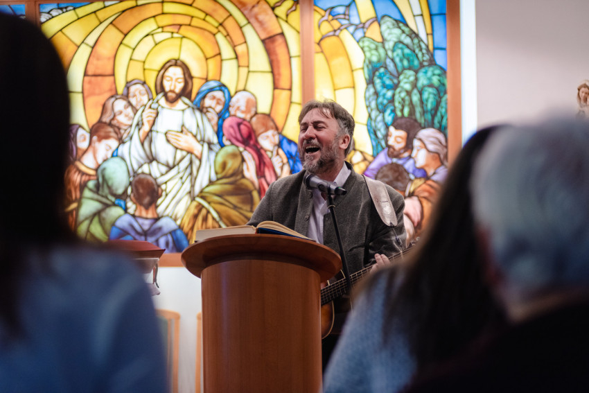 A tanulmányi nap koradélután dicsőítéssel, imádsággal folytatódott, majd Joanovics Róbert, a Szent András Evangelizációs Iskola igazgatója beszélt arról, hogy miként hirdetik a megváltást az iskola kurzusain.