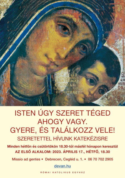 A katekézissorozatra, melynek a Neokatekumenális Út közösség debreceni közösségi háza (Cegléd utca 1.) ad otthont, felekezettől függetlenül mindenkit szeretettel várnak.