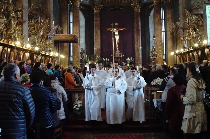 Majd arról beszélt, Mária kapcsolata Istennel nem gondolati, hanem személyes, számára Isten élő valóság. A kegyképen ábrázolt Szűzanya vérrel könnyezésének csodája arra hív bennünket, hogy feltegyük magunknak a kérdést: ki számunkra az Úr? Vízi Elemér egy beszélgetést idézett, amelyben valaki arra a kérdésre, hogy ki számára Isten, azt válaszolta, hogy amikor megpróbálja maga elé idézni, egy fekete ruhába öltözött, fejkendőt viselő nénit lát, aki takarít az irodában. Amikor az emberek már hazatérnek a munkából, akkor ez a néni megy, hogy összeszedje a szemetet, kiürítse a szemeteskosarat, hogy összesöpörjön, letörölje a port, hogy rendet tegyen. Másnap a munkába érkező emberek rácsodálkoznak a tisztaságra. Így tesz Isten rendet az életünkben: csak azt vesszük észre, hogy az életünk milyen szép, milyen rendezett.