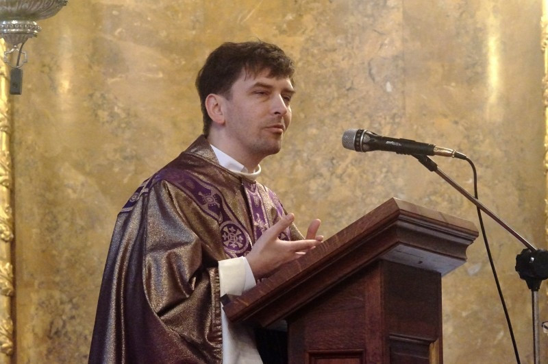 Ezt követően a jezsuita szerzetes a szomjúság motívumáról beszélt, ami összeköti a pusztában vándorló választott nép elégedetlenségéről szóló napi olvasmányt és a szamariai asszony történetéről szóló evangéliumi szakaszt. Felhívta a figyelmet arra a különleges módra, ahogyan Jézus a szamariai asszony figyelmét vezeti. Jézus is úton van, elfárad, pihenőt tart a kútnál, ahol találkozik az asszonnyal. Élő vizet kínál a kúthoz vízért induló asszony számára. Ahogyan a beszélgetés során lassan kibontakozik a nő élete, úgy szabadul meg terheitől, szabaddá válik. Jézus meghallgatja őt. Az asszony ebben a találkozásban megtapasztalja, hogy valaki szereti és elfogadja őt úgy, ahogy van. A felszabadulás örömét nem tudja magában tartani: a városba siet, hogy megossza az emberekkel a rátalálás örömét, annak örömhírét, hogy megtalálta azt, akit keresett.