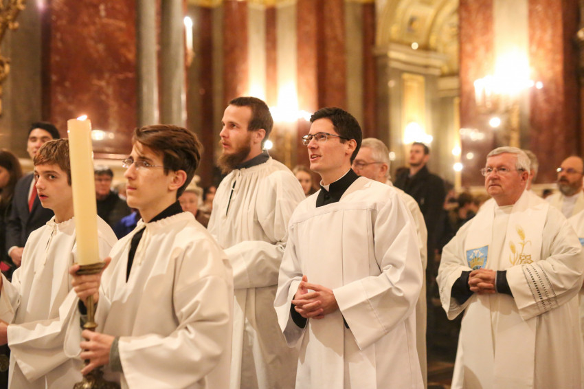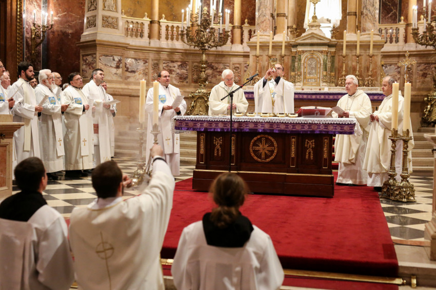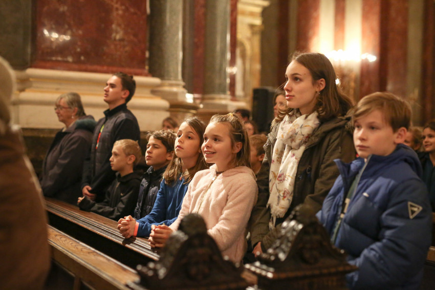 Az advent második vasárnapját követő hétfőn a délutáni csúcsforgalomban kellett eljutnom a bazilikába. Az esőben, a szokásosnál is nagyobb forgalomban, a zsúfolt tömegközlekedési eszközökön egy idő után reménytelennek tűnt a pontos érkezés. Heringként voltak összezsúfolva a munkából hazatérők és a karácsonyi bevásárlásra igyekvők a járműveken. Egy fiatal lány telefonált mellettem. Beszédéből kiderült, ő is a szentmisére igyekszik, kétségbeesetten jelezte valakinek, minden bizonnyal késni fog. Szóba elegyedtünk, kiderült, hogy az egyetemről megy társaihoz, akik már a bazilikánál vannak. Elmondta azt is, hogy szülei még bőven a rendszerváltozás előtt lettek regnumiak, ottani ismeretségükből lett házasság. Gyermekeik számára teljesen természetes volt, hogy ők is a közösség tagjai lettek. Mint mondta, a Regnum Marianumban közösséget, barátokat, hitet, lelkiséget kap. Fontos számára, hogy a megbolondult, rohanó világban „normális”, hasonlóan gondolkodó, önzetlen és vidám emberek közt lehet. Beszélgetés közben aztán megérkeztünk a bazilikához, s együtt állapíthattuk meg, hogy csodával határos módon – nem késtünk el. A lány a hatalmas tömegben eltűnt, a zsivaj pedig a szentmise kezdetét jelző csengőszóra hirtelen elhallgatott. Vidám, ám méltóságteljes ének töltötte be a bazilikát a papság és az asszisztencia bevonulása alatt.