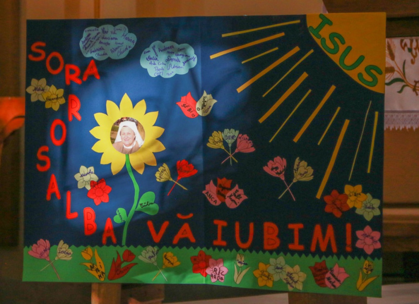A szentmise keretében a Jézus Szíve Kis Leányai által pártfogolt gyermekek énekkel köszöntötték Rosalba nővért, aki a szertartás során szerzetesi fogadalmait is megújította. A szentmise végén a közösség képviselői üdvözölték őt és adták át a virágokkal együtt jókívánságaikat.
