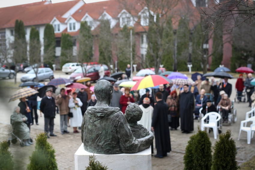 A szobrot Kozma Imre irgalmasrendi szerzetes, a Magyar Máltai Szeretetszolgálat alapító elnöke áldotta meg. Beszédében a Szent Erzsébet Otthon lelkiségét adó két szentet állította a középpontba: Árpád-házi Szent Erzsébetet, akit Szent II. János Pál pápa a „hatékony tékozlás szentjének” nevezett, illetve az életét a betegek szolgálatának ajánló Istenes Szent Jánost.