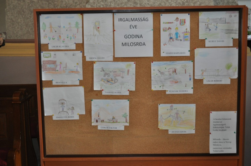 A székesegyházban kiállítást készítettek a beodrai hittanosok munkáiból, akik hitoktatójuk, Telek Lenke irányításával az irgalmasság cselekedeteit örökítették meg.