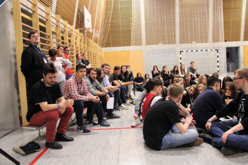 Péntek este megérkeztek a diákok és kísérőik Budapestről, Vácról, Kecskemétről, Szegedről, Gödről, Sátoraljaújhelyről, Mosonmagyaróvárról, Nagykanizsáról és még a határon túlról is, Nagykárolyból. A szombati napra csatlakoztunk hozzájuk, amikor reggel imára gyűltek össze a résztvevők a gimnázium dísztermében.