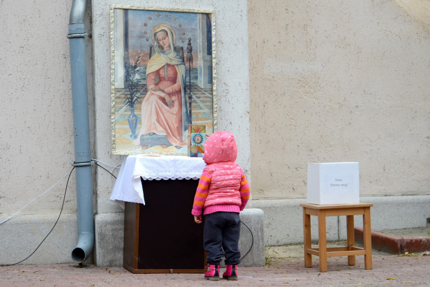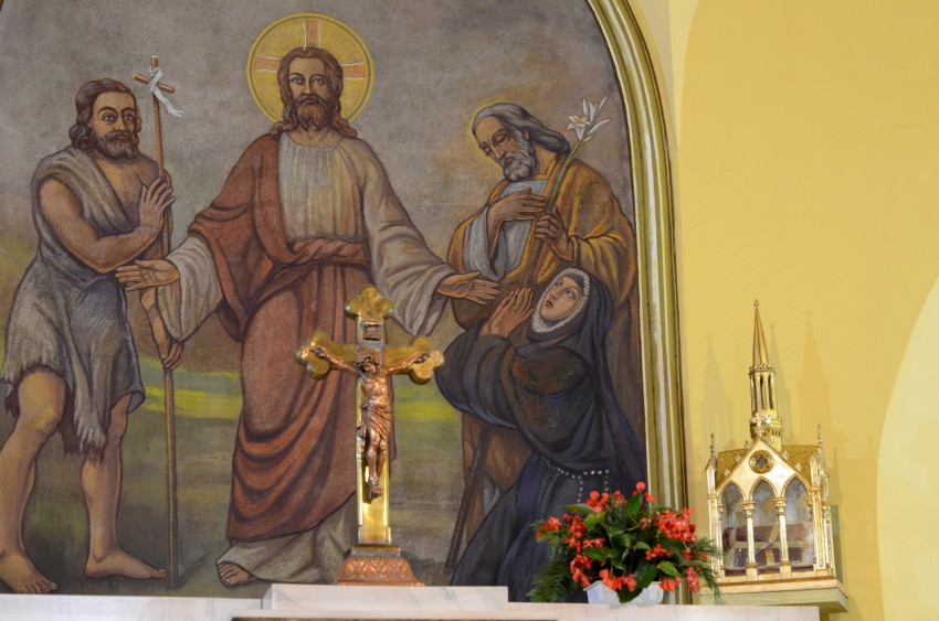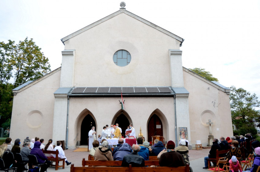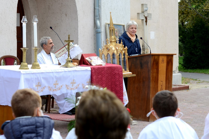 Ezen a vasárnapon, az egyik első csípős hideget hozó őszi napon a templom előtti téren várták az ünneplők Erdő Péter bíborost. Ünnepi díszben a tér: az oltárasztalon az ereklye, mellette a díszes ereklyetartó, és ott van a híres Mater Admirabilis-freskóról készült kép. Pauline Perdrau nővér alkotása, mely a szemlélődő, befelé figyelő Szűz Máriát ábrázolja, a Sacré Coeur nővérek közösségeiben, iskoláiban kedvelt festmény Japántól Ugandáig.