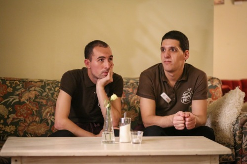 A Kávéházi esték Tóni atyával programsorozat részeként zajló beszélgetésen az estek hagyományát követve először a családi háttér került szóba. Miklós nem mindennapi gyermekkort tudhat magáénak: hatan testvérek, egyik bátyja örökbe fogadott. „Ő az egyik legjobb barátom – mondta Miklós –, és rengeteget tanultam általa az integrációról.” Testvére cigány, mozgássérült és értelmi sérült.