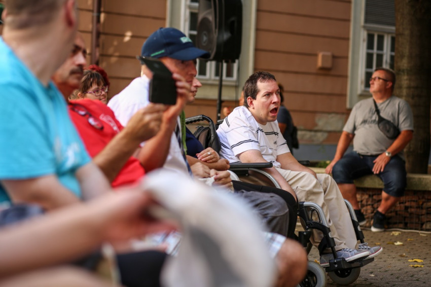 Nem a fogyaték a legnagyobb baj – mondta Magyar László, a Szent Kristóf Ház intézményvezetője –, hanem a társadalom hozzáállása a fogyatékosokhoz. A ház többek közt azért fogad be időről időre fogyatékkal élőket, hogy a család többi tagjának terhét némiképp csökkentse. Talán nem mindenki gondol abba bele, hogy a szülők, a rokonok sokszor már maguk is gondozásra szorulnának, de a sérült gyermeküket kell a nap huszonnégy órájában gondozniuk. Magyar László hozzátette: aki foglalkozik ilyen fiatalokkal, az nem csupán ad, hanem kap is – szeretetet, őszinteséget, nyugalmat, békét. Az intézményvezető beszélt arról is, hogy tizenegy fogyatékkal élő ember támogatott lakhatását is biztosítani tudják, sőt sok fiatal az iskola elvégzése után a foglalkoztatási programjuk keretében dolgozik is. Mint mondta, csodálatos érzés, amikor egy gondozásra szoruló első fizetését hazaviszi és leteszi szülei asztalára.