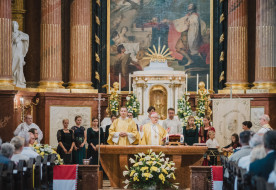 A koszorúzást követően a résztvevők elénekelték a Boldogasszony Anyánk himnuszt, majd visszakísérték a magyar szent család ereklyéit a püspöki palotába.