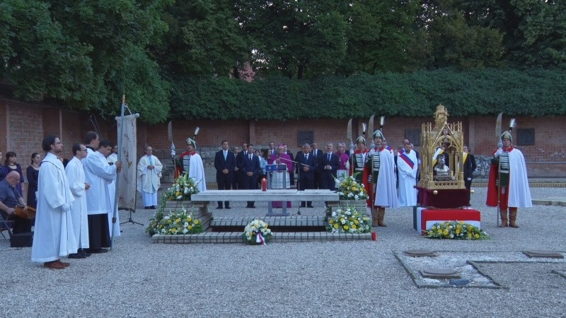 A szentmisét követően az ereklyéket körmenetben vitték a Nemzeti Emlékhelyre, Szent István király és Szent Imre sírjához, ahol közös ünnepséget tartott Székesfehérvár Megyei Jogú Város Önkormányzata, a Fejér Megyei Önkormányzat és a székesfehérvári püspökség. Az ünnepi körmenetben részt vettek a Vitézi Rend, a lovagrendek tagjai, a Hagyományőrző Koronaőrök, közéleti vezetők, a helyi katolikus iskolák és egyházközségek képviselői.