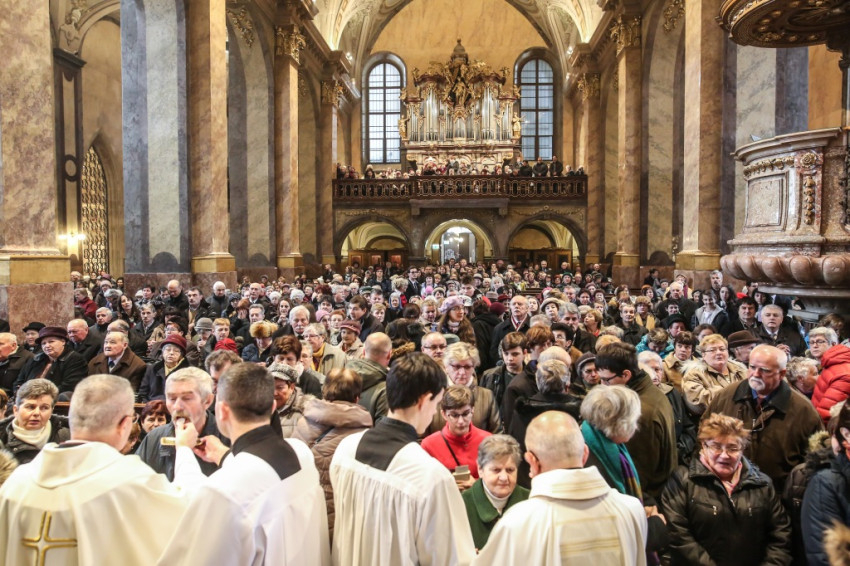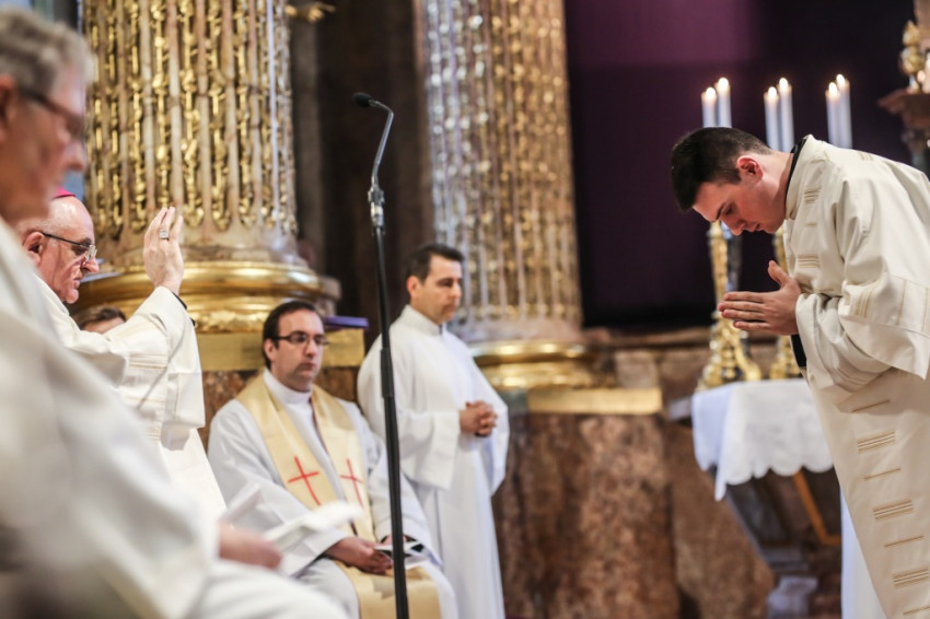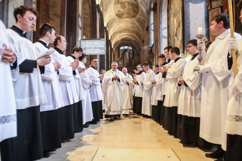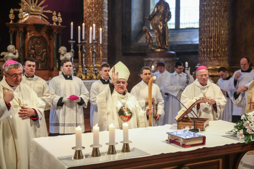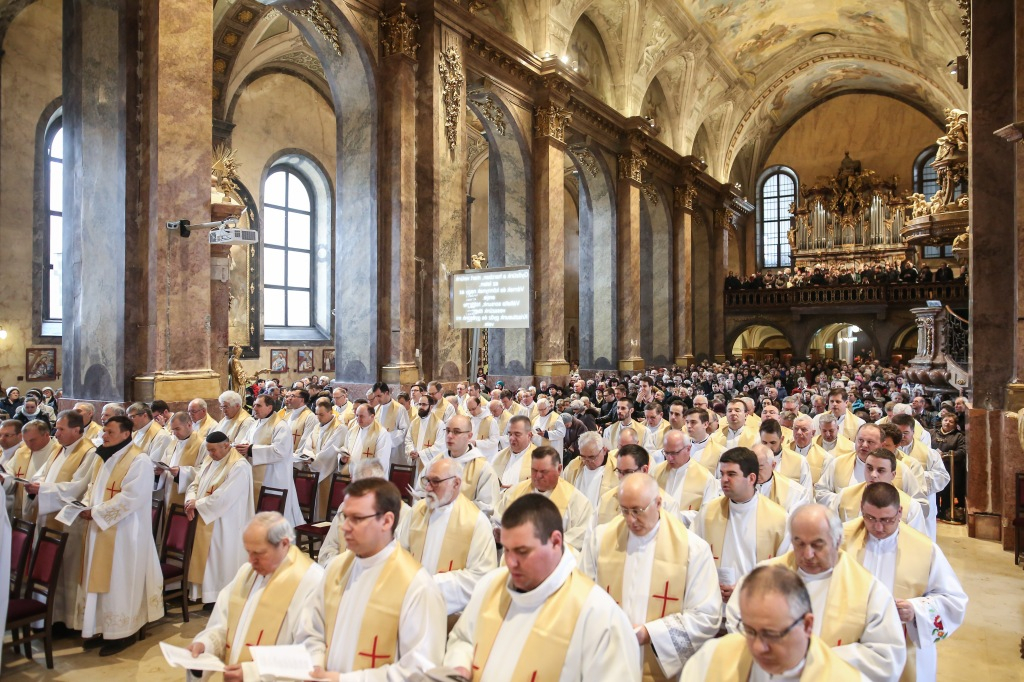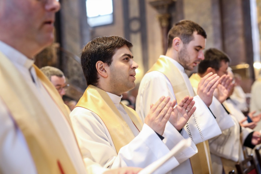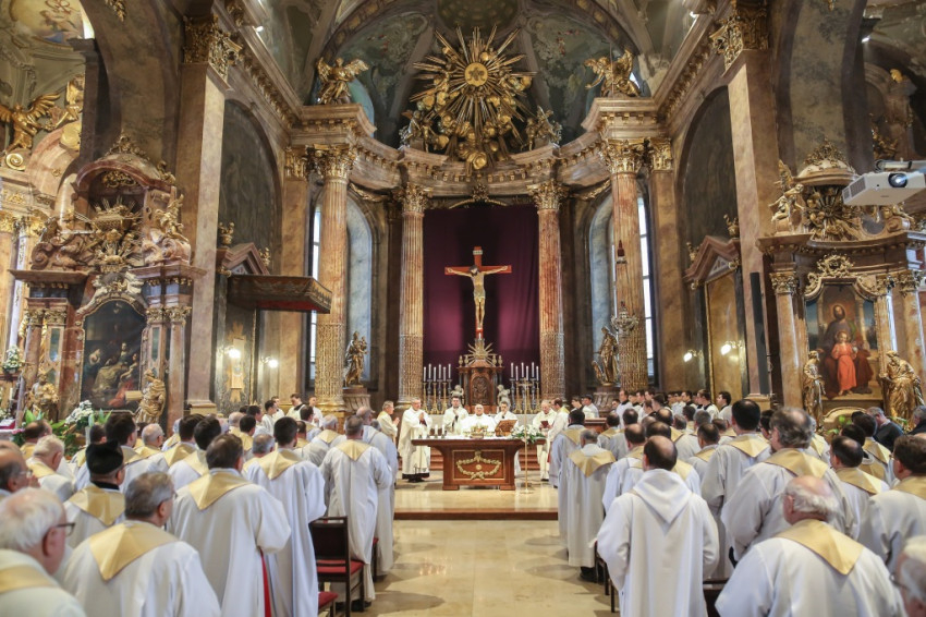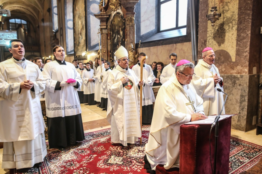 A szentmisére hívek sokasága töltötte meg a székesegyházat. Az atyák a szentély előtt elhelyezett széksorokban ültek, a szentélyben kaptak helyet a növendékek és az írországi vendégek, a Saint Patrick’s College tizenegy növendéke és elöljáróik. Az oltár körül állt Varga László főcelebráns mellett Veres András győri megyéspüspök és Pápai Lajos nyugalmazott győri megyéspüspök, Németh László helynök és Bognár István, a székesegyház plébánosa. Veres András így köszöntötte az egybegyűlteket: „Bánatunkat, örömünket, hálaadásunkat hoztuk ma ide, a Szűzanya elé.”