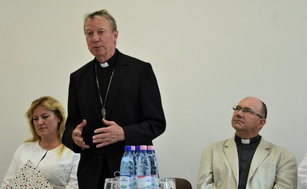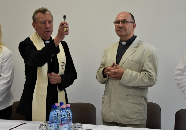 A videóüzenet után Beer Miklós püspök, apostoli kormányzó az értékátadásról, értékmegőrzésről elmélkedett. Beszélt az ifjúság küldetéstudatáról, hangsúlyozva azt, hogy ahhoz, hogy az új nemzedék szolgálni tudja az Egyházat, szükség van a felkészítésükre is. Elmélkedését a 127. zsoltár gondolatával zárta: „Ha az Úr nem építi a házat, az építők hiába fáradnak”, vagyis hogy ne hasztalan legyen fáradozásunk mindig kérnünk kell az Úr megáldó kegyelmét és támogatását. Ezt követően Beer Miklós megáldotta az épületet, a harangot és a harangtornyot.
