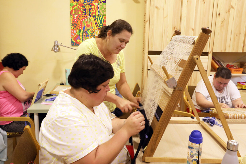 A foglalkozás elején mindig választanak egy segítőt is, akinek az a feladata, hogy a szövéshez szükséges eszközöket mindenkinek biztosítsa: adjon új fonalat, ha elfogyott, dobja ki a szemetet, vegye föl, ha valami leesett a földre, juttassa el a leverővillát vagy a nagyollót annak, aki kéri (persze csakis hegyével lefelé fordítva). „Segítő bárkiből lehet, és segítőnek lenni kitüntetés, örömforrás, mert ebben a szerepben a fiatalok azt élhetik meg, hogy ők adnak, hogy hasznossá lehetnek a többiek számára. Mindenkinek meg kell tapasztalnia, hogy ő nem csak segítségre szoruló valaki” – mondja Győri Ildikó, aki a fiatalok fejlődését sem elsősorban textilművészeti szempontból értékeli: „Folyamatosan tanulunk, a fiatalok tehetsége szerint hosszú távon el lehet jutni akár a szövésmintákig is, de itt nem az a cél, hogy mindenki mindent tudjon, hanem az, hogy jól érezzék magukat, hogy a szövés eszköz legyen ahhoz, hogy az életük rendben legyen. A mottónk is erről szól: szépen, lassan, élvezettel kell dolgozni. Ha hajtjuk egymást, vagy mindenkitől olyat várunk el, amire még nem képes, akkor elvész a lényeg.”