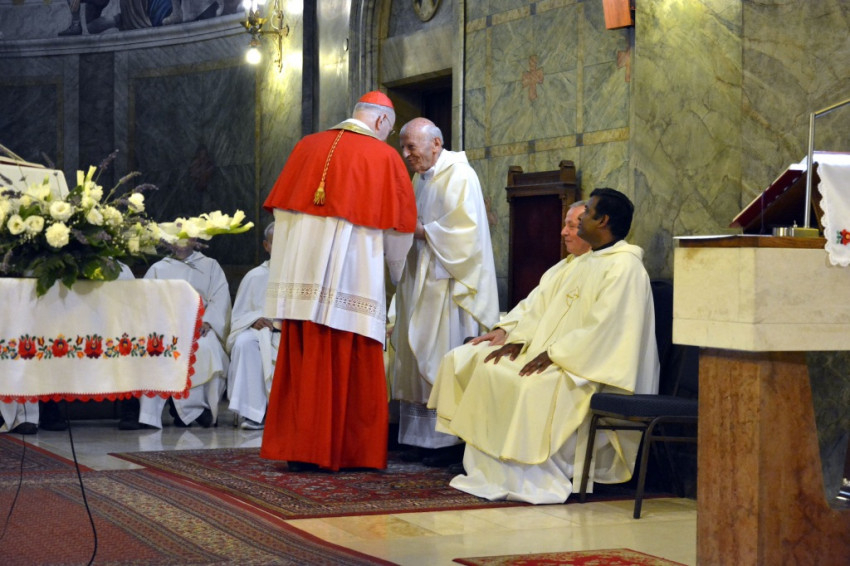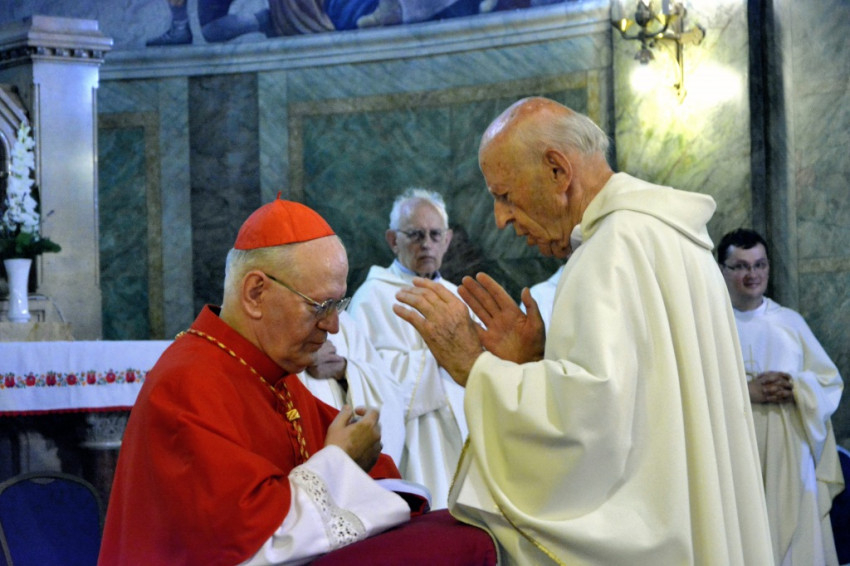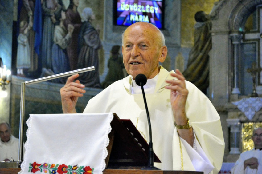 2. Kerényi Lajos atya a piarista rendben tett örök fogadalmat. Vácott szentelték pappá 1952. június 22-én. Papi szolgálatának hosszú évei alatt a mi Főegyházmegyénkben működött, mégpedig számos állomáshelyen, gyakran távoli, vidéki plébániákon. 1976-ban került ide, a Külső-Ferencvárosba, ahol 1995 óta vezette a plébániát. Dinamikus lelkipásztori egyénisége sok területen megmutatkozott az ifjúságpasztorációban és a hitoktatásban, de egészen sajátos módon a kórházi lelkipásztori munkában is. Ezt a nehéz években is nagylelkűen vállalta. Megtalálta az utat sok ember szívéhez. Egyes megrendítő találkozásairól legendák születtek. Amikor a politikai körülmények már lehetővé tették, rendre megjelentek írásai különböző katolikus újságokban, folyóiratokban, de hirdette az evangélium tanítását a rádió műsoraiban is. Amikor tavaly nyugállományba került, az volt a kérése, hogy még egy évig szeretett plébániáján maradhasson, együtt ünnepelhessük meg a kettős évfordulót. Ezért bár akkor nyugállományba helyezése megtörtént, ez csak az idei év nyarától lép hatályba. De ez a párját ritkító kitartása is a tényleges szolgálatban mutatta, hogy milyen sokat jelent számára, hogy Krisztust képviseli és a rábízott közösségért él. Apostoli lelkesedése, bátor helytállása a nehéz körülmények között is, az evangélium ügye és az emberek iránti hűséges szeretete, az ifjúsági találkozók, a hittanórák, a táborok maradjanak meg nemzedékeken át mindnyájunk legszebb emlékei között.
