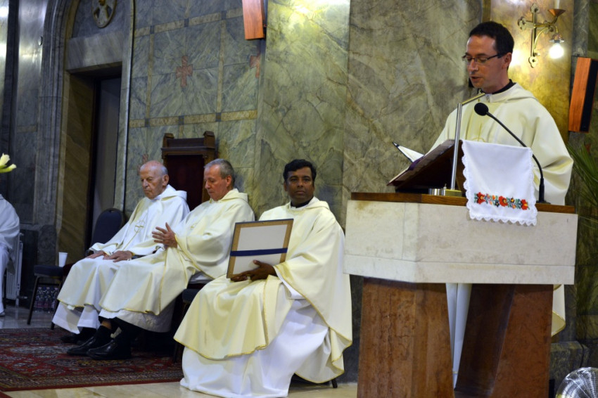Kerényi Lajos atya tartományfőnöke elmondta, készülve erre a napra, megtalált egy hatvanöt esztendővel ezelőtt, a primícián készült feljegyzést, ahol az újmisés Kerényi Lajos Izajást idézte az áldás előtt: „Itt vagyok, Uram, küldj engem.” Egykor elhangzott: „Úgy fogadjátok az újmisés áldást, hogy az bennetek odahasson, hogy elmenvén tanúságtévői legyetek Istennek. Mert azé az áldás, aki fogadja, aki felhasználja.”
