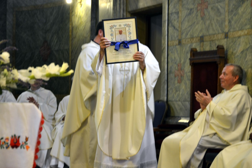 Kedves Lajos atya, ha rátekintesz, hogy milyen sokan vannak a templomban, sőt a templom előtt is, akkor azt mondhatjuk örömteli lélekkel, hogy ezek a primíciás szavak próféciává lettek a te életedben. Elfogadtad az Úristen meghívását, az ő áldását, és így lettél sokak számára te magad áldás. Köszönünk téged az Úristennek – zárta szavait Labancz Zsolt, majd átadta Kerényi Lajosnak Ferenc pápa áldását, melyet a vasmise emlékére küldött.