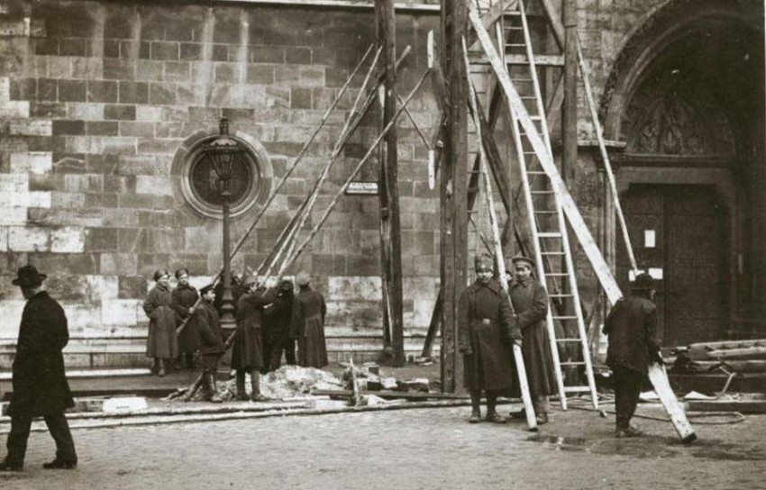Gödölle Mátyás kurátor kiemelte: hiába az esemény pompája, az utolsó magyar király megkoronázására mélyen rányomta a bélyegét a világháborús helyzet. Alig egy hónap volt a ceremónia előkészítésére, a felhasznált drapéria egy részét rekvirálni kellett, a díszlet felépítésében pedig orosz hadifoglyok is részt vettek.