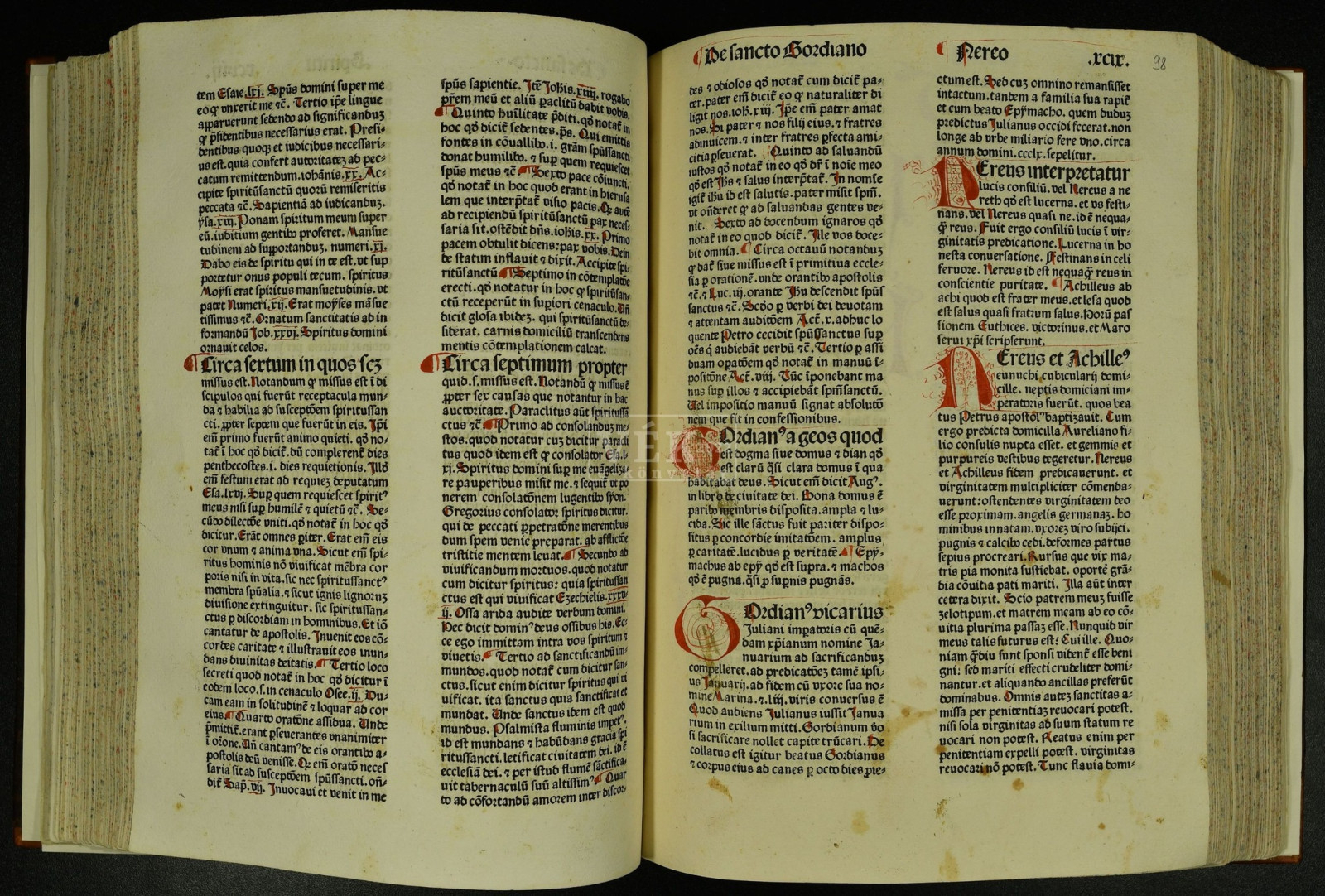 A Legenda aurea sanctorumnak az 1478-ban Anton Koberger híres nyomdájában, Nürnbergben készült ősnyomtatványából Magyarországon hét példány lelhető fel. Ezeknek egyikét a Veszprémi Érseki Könyvtárban őrzik. A könyv a veszprémi káptalan könyvtárának féltett kincse volt, bár névmutatója és első fóliója hiányzik. Az előszó így nem ismerhető meg e példányból, de a törzsszöveg hiányzó részét kézírással pótolták.