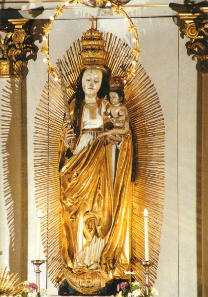 Az idén ötszáz éves csíksomlyói Mária-szobor a világon ismert legnagyobb kegyszobor. A reneszánsz stílusú, hársfából készült alkotás magassága 2,27 méter, alkotója ismeretlen. A szobor a napba öltözött asszonyt ábrázolja, akinek lába alatt a hold, fején tizenkét csillagból álló koszorú, bal karján a kis Jézus. Mária királyi jegyeket is visel: fején korona, jobb kezében jogar. A szobrot 1798-ban, Batthyány Ignác püspöksége idején az egyház „Csodatevő, segítő szent Szűznek" nevezte el.