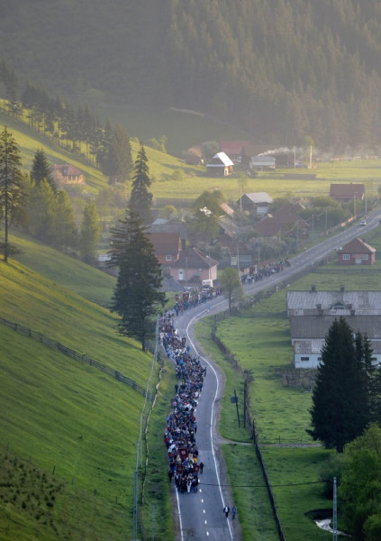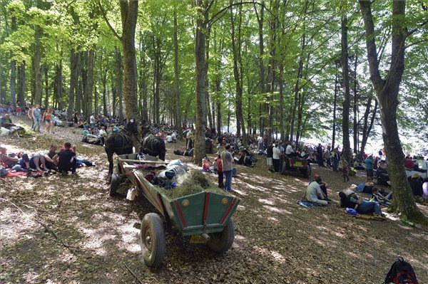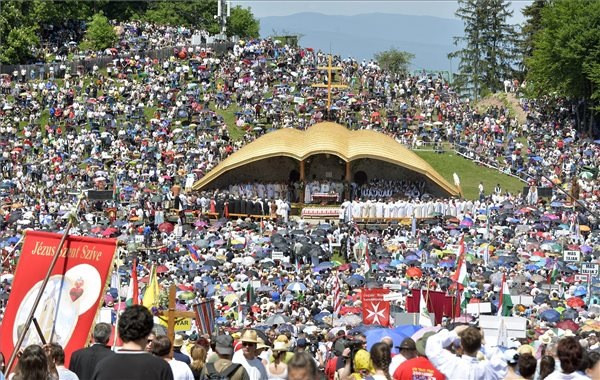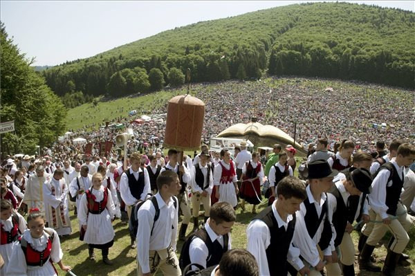 A hagyományosan pünkösdvasárnap előtti szombaton tartott zarándoklatra idén is százezrek érkeztek szerte a világból a csíksomlyói hegynyeregbe.