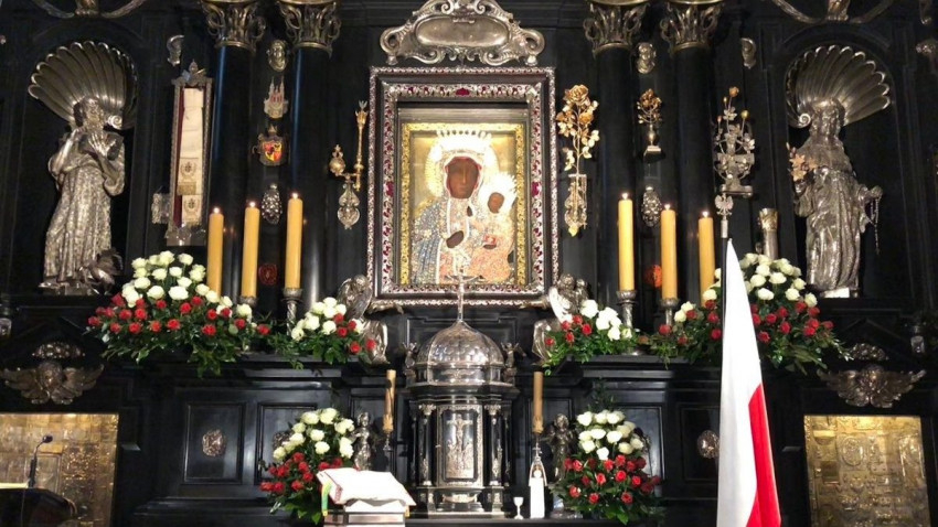 A 293 méter magas Jasna Góra (Fényes-hegy) kolostorát 1382-ben magyar pálosok alapították. Ennek egyik kápolnájában található a híres Fekete Madonna-kegykép, amely Európa egyik legismertebb Szűz Mária-ábrázolása, egyben a lengyel katolicizmus és függetlenség jelképe. A legenda szerint Szent Lukács evangélista festette egy cédrustáblára, amely még a Szent Család otthonából származott. Egy Jasna Góra-i dokumentum szerint a kegykép az alapítás évében, 1382 augusztusában jutott el a kolostorba Jeruzsálemből Konstantinápolyon keresztül. A kegyképhez fűződő egyik legismertebb csoda az 1655-ös „özönvíz” néven ismert svéd támadás, amelyet sikerült visszavernie egy maroknyi lengyel seregnek. Ennek az ostromnak, a svéd ágyúgolyóknak a nyomai még ma is jól láthatók a Szent Rókus-bástya falain. A csodás győzelmet követő évben, 1656-ban II. János Kázmér lengyel király Máriának ajánlotta fel az országot, aki azóta Lengyelország Patrónája és Királynője.