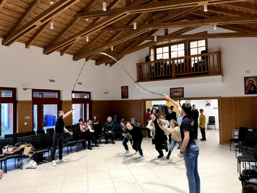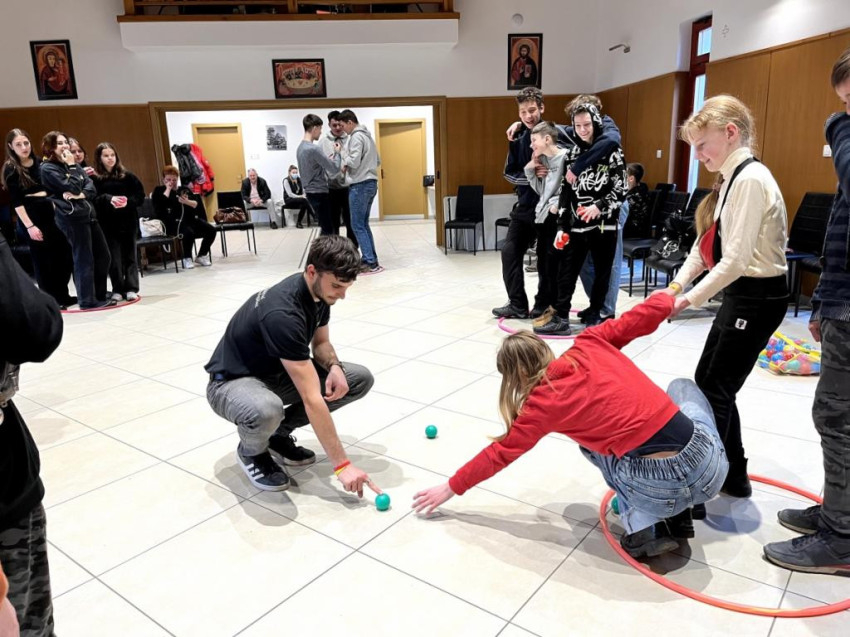 A görögkatolikus templom közösségi házában a csoportos játékok lebonyolításában jártas önkéntesek a „mozgó játszótér” módszerével egyszerre tudtak örömet szerezni a gyerekeknek, ugyanakkor felmérni, milyen képességeik, érdeklődési köreik, erősségeik vannak, így a következő játékot már a gyerekek igényeinek és képességeinek megfelelően tudták megszervezni. Ökrös Benjámin, az ifjúsági önkéntes csoport tagja elmondta, felfedeztek kisebb kulturális különbségeket, de ezek csak még izgalmasabbá tették a játékokat. „Érdekes volt látni, hogy mennyivel másképp játszanak egy olyan közismert játékot, mint a kő-papír-olló. Mi is tanultunk a gyerekektől. Sokat társasoztunk és twistereztünk. A 10 és 18 év közötti fiatalokat csoportokra osztottuk, és az életkoruknak megfelelő játékokat tartottunk nekik. Próbáltunk az egyszerűségre törekedni, mivel hiába volt tolmácsunk, azt gondoltuk, az lesz a legélvezhetőbb és legjobb, ha maximalizáljuk azt az időt, amit a játékra tudunk fordítani, és minél kevesebbet beszélünk egy adott játékról. Nagyon gyorsan elrepült az idő, és mindig azon kaptuk magunkat, hogy még folytatnánk. Az események végén volt lehetőségünk kicsit beszélgetni akár tolmács segítségével, vagy egy magyarul is beszélő kísérő pedagógussal, ami mindig nagyon jó lezárást adott a napnak.”