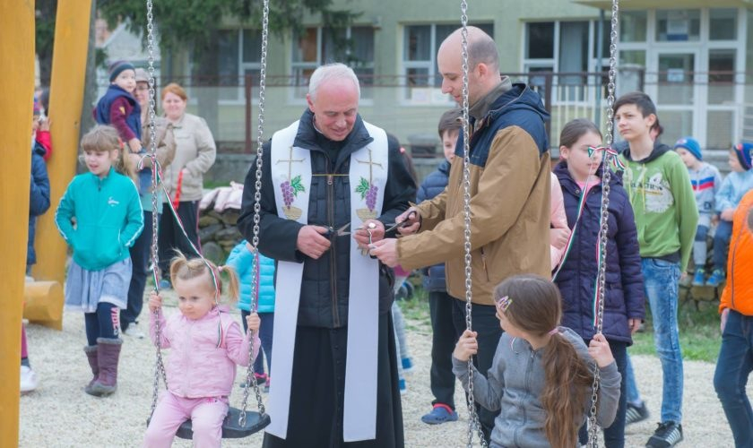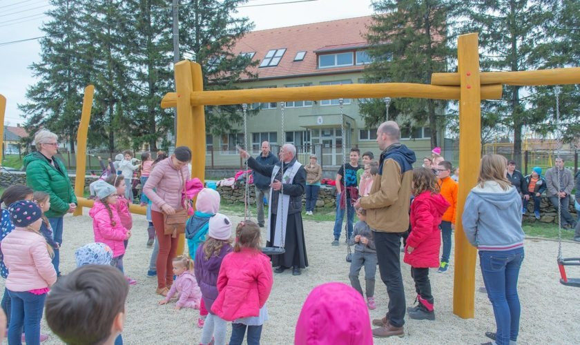 Illés Sándor atya köszöntőjében kifejezte: nagy öröm számára a játszótér megvalósulása, hiszen a gyermekek így közelebb kerültek a plébániához, a szülők pedig közösségi teret kaptak a találkozás örömének megéléséhez.