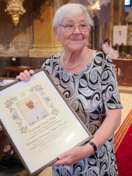 A szentmise végén Spányi Antal püspök átadta Harsányi Györgyné Piroskának a Szentatya áldását az egyházközségben végzett több évtizedes áldozatos munkájáért.