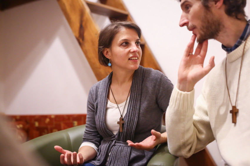 Hogyan lehet a sokféle tevékenységet – munka, gyereknevelés, család, közösség, irodalom, művészet – összeegyeztetni? Mindketten vallják, hogy ez komoly szervezést igényel. De nagyon sokat jelent számukra, hogy a közösségükben családként lehetnek jelen, s a gyerekek is otthonosan mozognak a testvérek és a nővérek között, barátaik vannak itt.