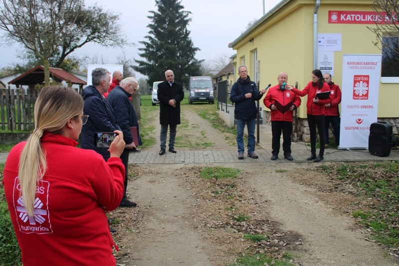 Écsy Gábor, a Karitász országos igazgatója beszédében azt foglalta össze, hogy a kisszentmártoni karitatív munka miként illeszkedik a Katolikus Karitász küldetéséhez és tevékenységeihez. Köszönetet mondott az itt szolgálatot végző munkatársaknak és mindazon partnereknek, akikkel együttműködve végzik tevékenységeiket. Az igazgató arról is beszélt, hogy a válság miatt sok családban az is kérdéses, lesz-e fűtés, vagy mi kerül az asztalra. Ezért a Karitász nemrég „Segítő kéz” elnevezéssel országos adománygyűjtő kampányt indított, összefogásra és segítségnyújtásra kérve mindazokat, akik együttéreznek a nehézségekkel élőkkel.