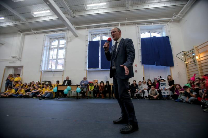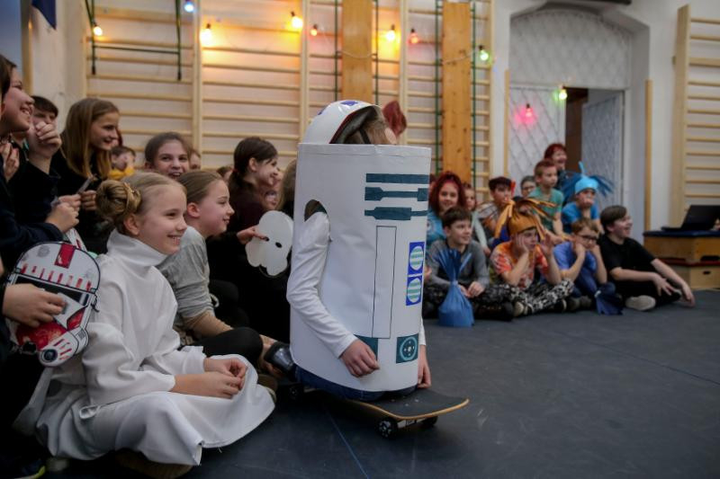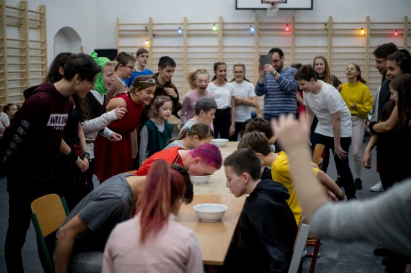 Így történt ez a kispesti Reménység Katolikus Általános Iskolában is, ahol a jelmezbe öltözés mellett tréfás vetélkedők, az osztályok által előadott bemutatók gondoskodtak a jókedvről, és töltötték meg derűvel az esemény helyszínéül szolgáló tornatermet.