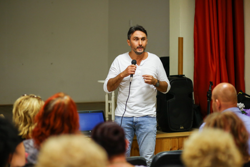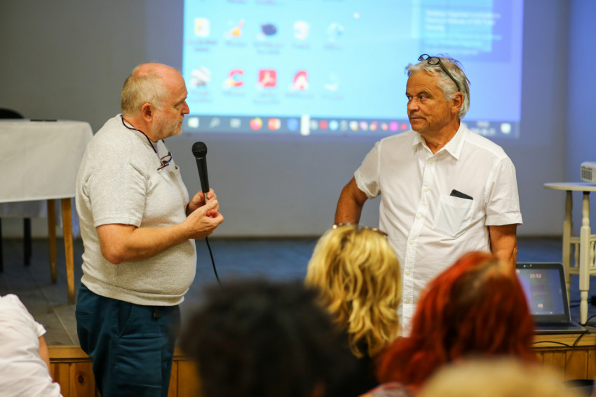 A fogantatástól a foglalkoztatásig arlói program koordinátora Velkey Balázs, a miskolci Fényi Gyula jezsuita gimnázium igazgatóhelyettese. Ő arról szólt az eseményen, hogy a kultúrprogramokon kívül a Magyar Máltai Szeretetszolgálat két teljes állású szociális munkással lesz jelen a településen, az egyikük Baji József (nyitóképünkön), aki a faluba járt iskolába – ő a családjával együtt részt is vett a filmklubon. A másik státuszon a jezsuita iskola egyik volt, immár harmincon felüli diákja, Robi és barátnője, Bea osztoznak fél-félállásban. Kis Ferenc, az eddig a Jezsuita Menekültszolgálatban tevékenykedő rendtag is heti két napra a településre költözik, miközben szeptembertől mentorképzésben vesz részt.