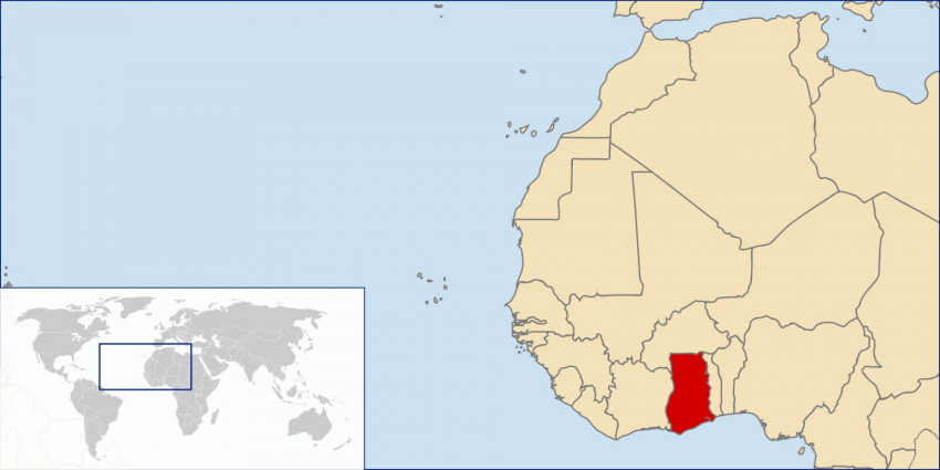 Ghána Nyugat-Afrikában található, csupán néhány fokra északra az Egyenlítőtől. Az ország 238 540 km² területen fekszik, lakossága 29 767 108 fő. A 2000-ben végzett népszámlálás adatai szerint a lakosság 68,8 százaléka keresztény (18,6 százaléka protestáns, 15,1 százaléka katolikus, 24,1 százaléka pünkösdi/karizmatikus), 15,9 százaléka muszlim, 8,5 százaléka törzsi vallású, 0,7 százaléka egyéb, és 6,1 százalék nem válaszolt.