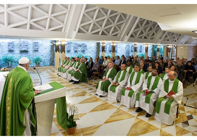 Jézus soha nem távolodott el a néptől, és soha nem távolodott el az Atyjától. Jézus nagyon össze volt kapcsolva az Atyával, egészen egy volt Vele – és éppúgy nagyon közel volt a néphez. Tekintélye volt, és ezért követte Őt a nép. „Jézust, a Jó Pásztort szemlélve, jó, ha mi is meggondoljuk, kit akarunk követni” – fordult Ferenc pápa a kápolnában lévő hívekhez.