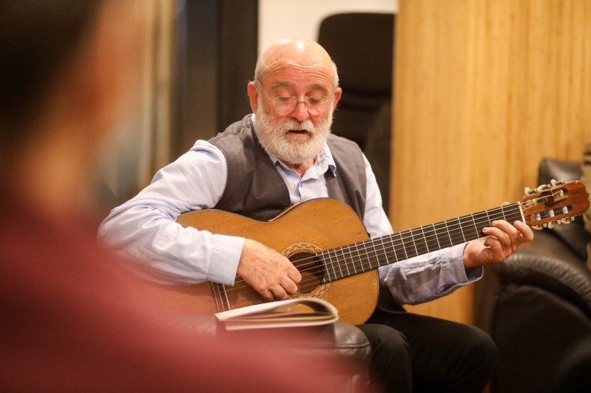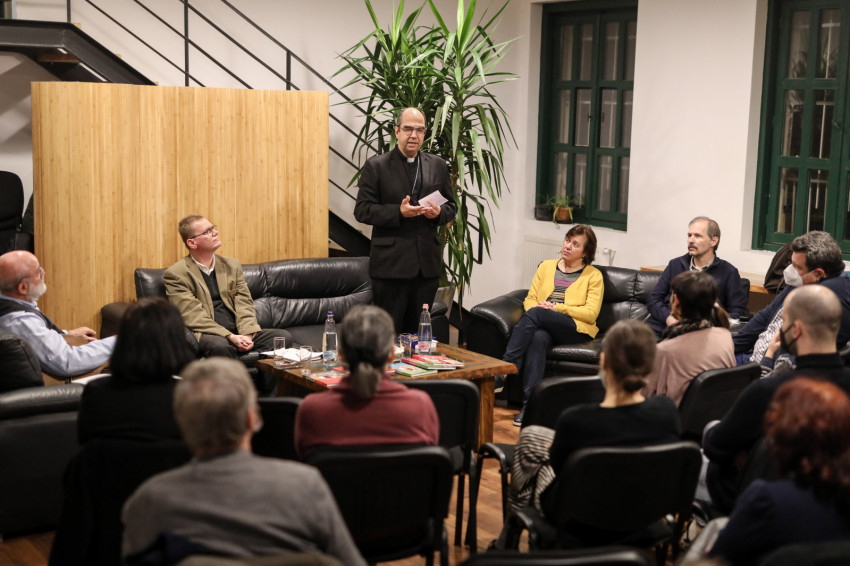 A könyvbemutatón Gryllus Vilmos kétszeres Kossuth-díjas zenész, a Kaláka együttes egyik alapítója zsoltárokat énekelt, gitárkísérettel.
