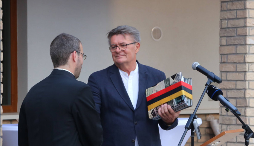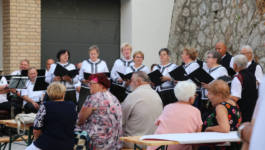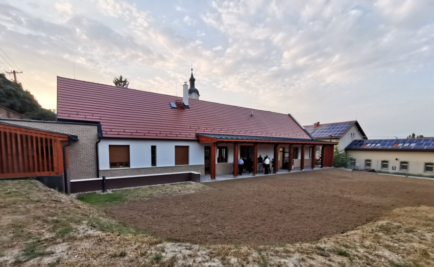 Az ünneplés a plébánia és közösségi ház megáldásával folytatódott. A plébánia műemlék jellegű épülete, az új, L alakban kialakított szárny, valamint a domboldal mint támfal nagy, belső udvart fog közre. Itt állították fel az asztalokat az ünneplők fogadására.