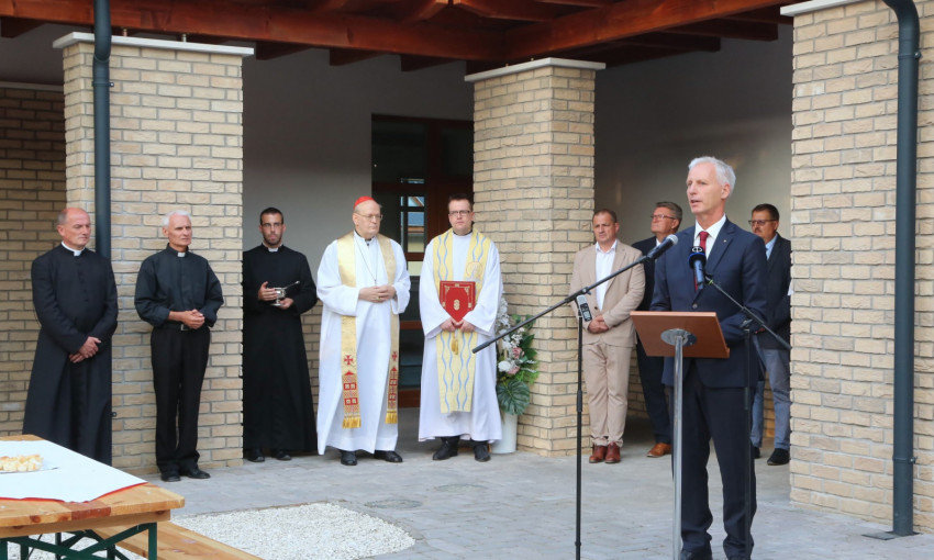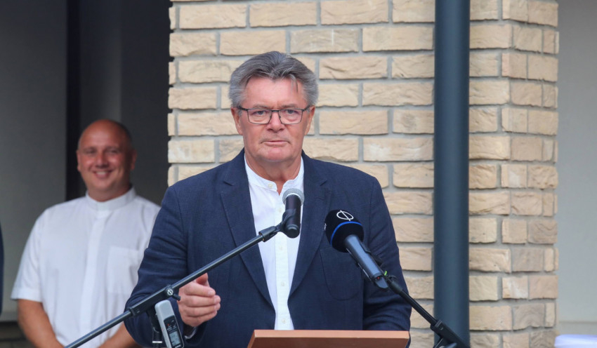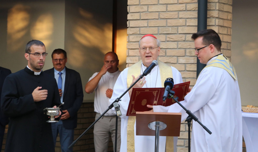 Nagy örömmel áldjuk meg ma ennek a plébániának a megújult épületeit. Köszönetet mondunk a Gondviselésnek, hogy mindez elkészülhetett. Köszönjük az önkormányzatnak, a magyar államnak és mindazoknak, akik adományaikkal, munkájukkal, szakértelmükkel lehetővé tették, hogy ez a régi álom megvalósuljon. De az evilági erőfeszítéseknek, külső feltételeknek akkor van igazán értelmük, ha közösségi élet, hit, bizalom, szeretet költözik a falak közé. Adja Isten, hogy ez a megújult plébánia és közösségi ház jó törekvéseink és a minden embert felkaroló isteni szeretet sugárzó központja legyen.