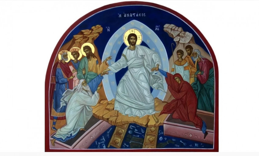 Nyéky Kálmán arról is beszélt, hogy amikor az emberek meghalnak, akkor egy ölelő mozdulat jellemző rájuk, akárcsak a születéskor, ezt lehet az Isten átöleléseként is érteni. S ahogy a halálnak, a feltámadásnak is jele a test, az Anasztaszosz-ikonon például az látszik, ahogy Jézus nem a kezüknél, de a karjuknál fogva kihúzza a sírból Évát és Ádámot. Az előadó ismét hangsúlyozta, hogy