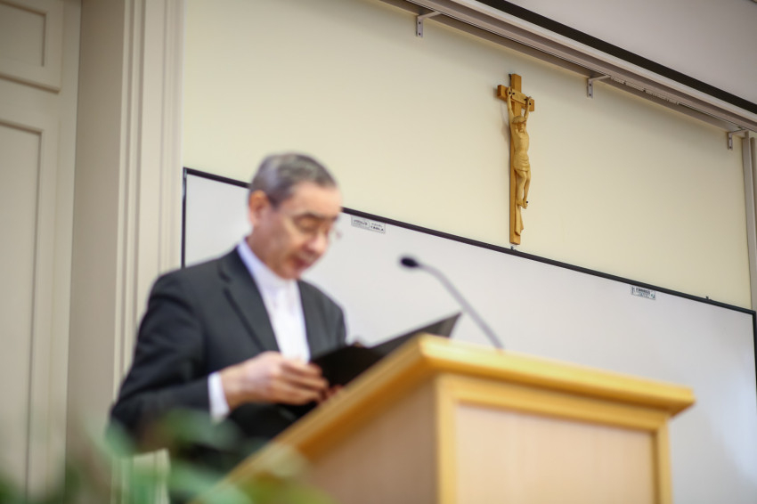 Kocsis professzor előadása két részből állt. Először azon formai sajátosságokról beszélt, amelyek Jézus tanítását jellemzik, a második részben pedig felvázolta tanításának módszereit, illetve lényegét, tartalmát.
