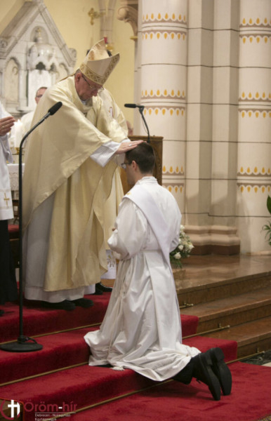 „Vajon mi lesz ebből a gyermekből? Hiszen nyilván az Úr volt vele.” (Lk 1,66). Ezt a kérdést – amit a szomszédok föltettek Keresztelő János születésekor – mi is föltehetjük a két fiatallal kapcsolatban, akiknek életén meglátszik, hogy az Úr van velük – kezdte a főpásztor homíliáját. Mi lesz belőlük? Hogyan alakul az életük? Nem tudjuk előre, de egy dolgot tudunk, azt, hogy nagy lelkesedéssel és örömmel indulnak el ezen az úton, hogy szolgálják Istent és a rájuk bízott embertársaikat. Hálásak vagyunk értük – tette hozzá.