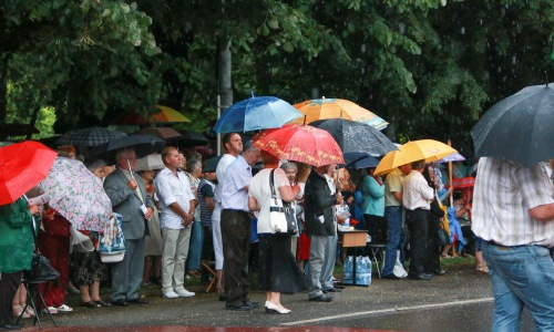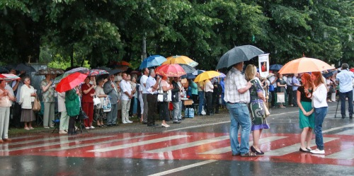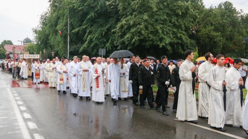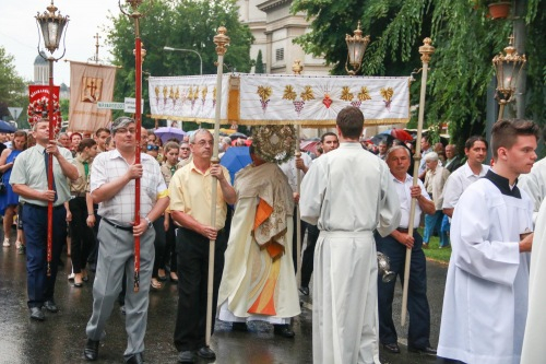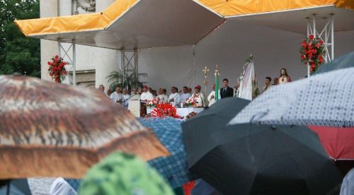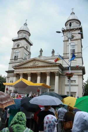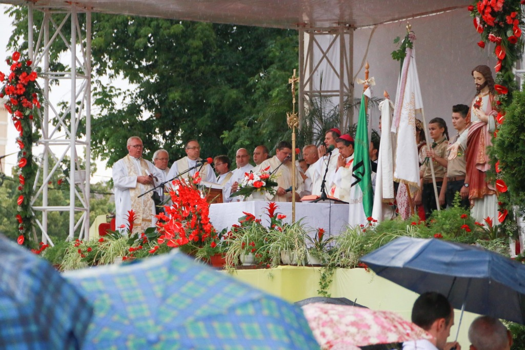 Bőséggel hullott az „égi áldás” a szatmárnémeti székesegyház előtti téren összegyűlt több ezer hívőre a Jézus Szíve-búcsún. A Szatmári Római Katolikus Egyházmegye búcsúünnepére idén is országhatáron belülről és túlról érkeztek katolikus hívek, hogy felajánlják önmagukat, családjukat Jézus Szentséges Szívének.