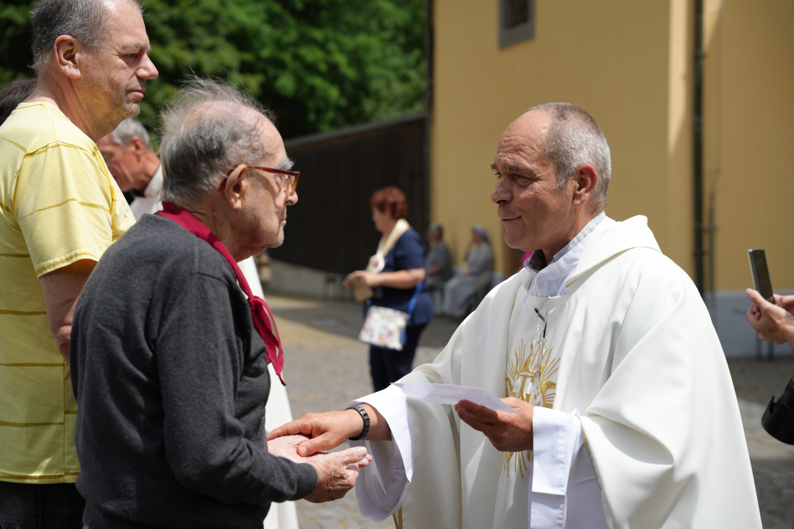 A busszal, személyautóval, illetve gyalogosan is érkező zarándokok különleges ajándékot kaptak Orosz Lóránt OFM kegyhelyigazgatótól, aki külön-külön köszöntötte az érkező csoportokat.